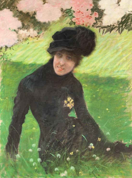 Dall’altro l’emancipata società internazionale colta in sereni momenti en plein air da De Nittis e Zandomeneghi, con una novità di linguaggio che apre la via all’arte moderna. É il caso di Léontine De Nittis sorridente in un prato di primavera, della giovane parigina assorta nella lettura, della signora con l’ombrellino e di Fernanda Ojetti nel roseto. Fanno da corollario le limpide marine di Giovanni Boldini e Moses Levy, testimonianze di oltre mezzo secolo di creatività in armonia con il mondo. Emblematico di una serenità, foriera del ritrovato entusiasmo, è Il ciliegio fiorito di Carlo Fornara, un inno alla vita nel segno della continuità e della speranza.