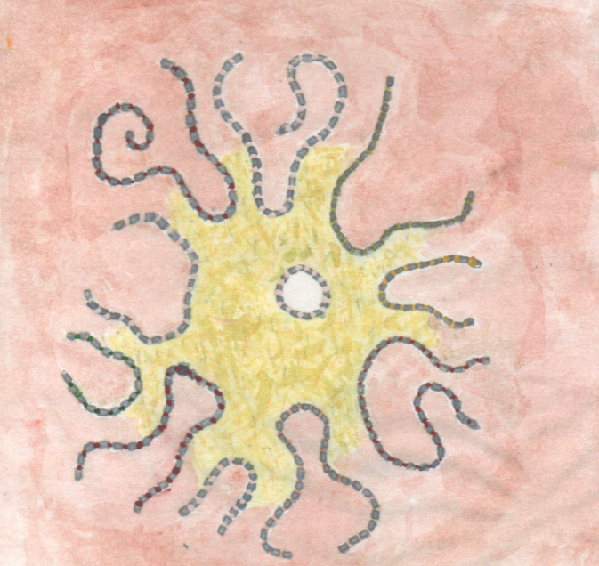 Un po’ polpo, un po’ sole, un po’ cellula, la grande installazione presenta, al centro, un cerchio pensato come una sorta di ombelico, simbolo transculturale che proietta l’analogia tra universo e corpo.