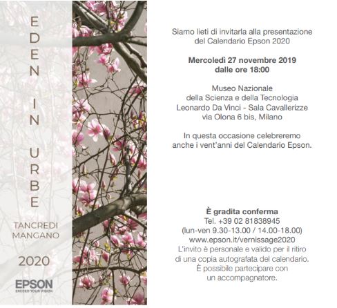 Il Calendario 2020 nasce da un punto di vista inusuale di cui si fa portatore Tancredi Mangano, fotografo e scultore, che più volte ha esplorato il dialogo sommerso e silenzioso fra natura e ambiente urbano. Eden in Urbe è il risultato di un ribaltamento di prospettiva