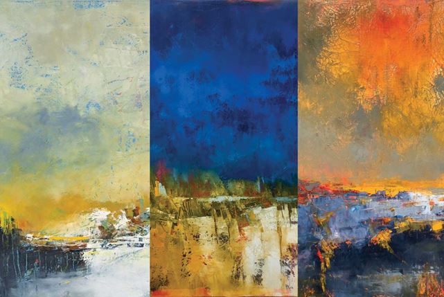 Patrick traccia orizzonti, cieli infuocati, ma non mira alla raffigurazione bensì all’identificazione di uno spazio tutto interno alla pittura cogliendone il senso intimo, rivolgendo il proprio sguardo all’universo interiore, un territorio immateriale che non conosce limiti.