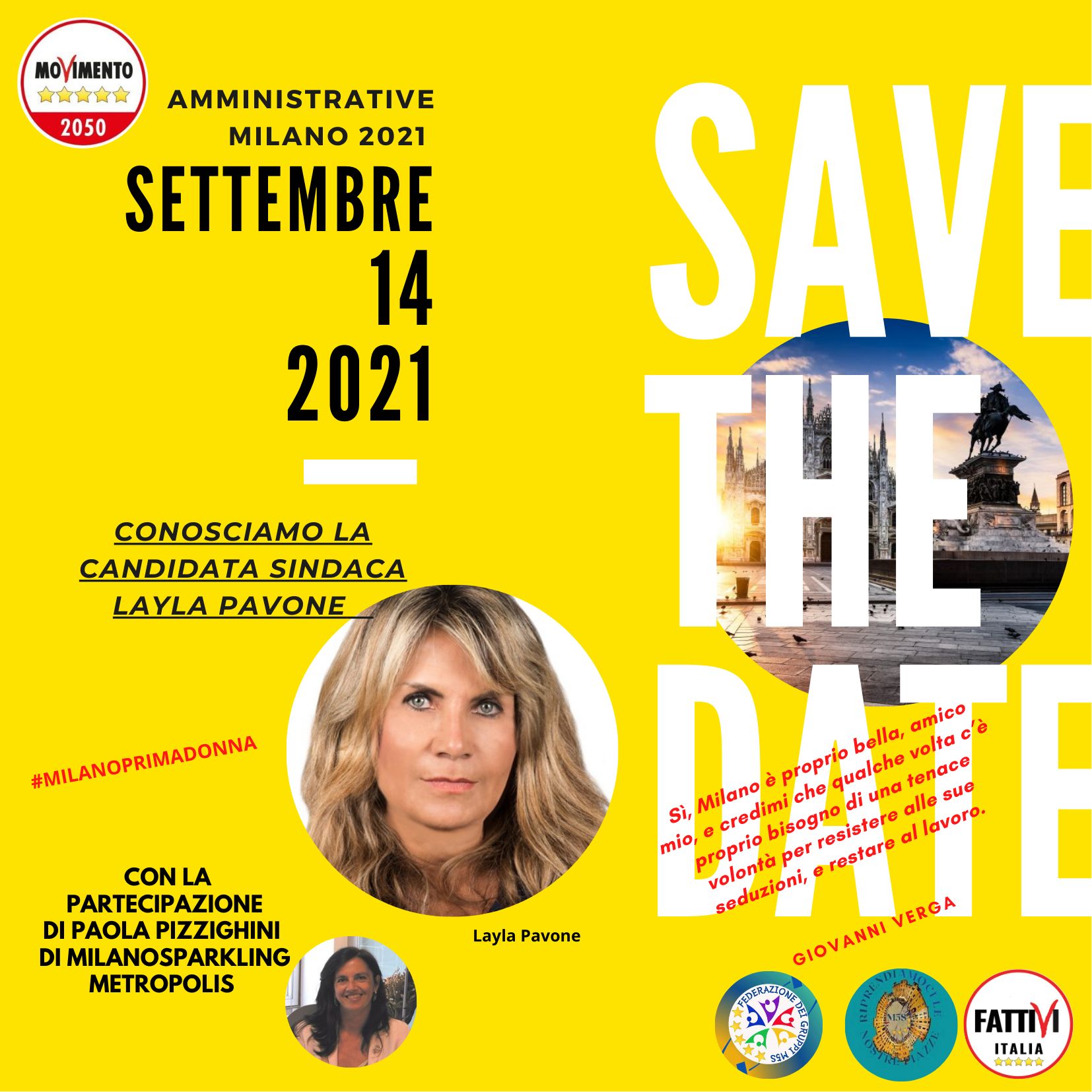 martedì 14 settembre alle ore 21 per Milano Sparkling Metropolis Paola Pizzighini intervisterà la candidata Sindaca di Milano Layla Pavone che si presenta per il MoVimento 5 Stelle. Saremo ospiti degli amici di Federazione dei gruppi M5S di Facebook.